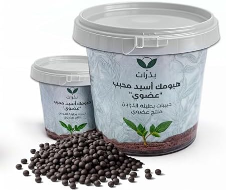حمض الهيوميك \"العضوي\" (محبب) - تغذية عضوية متكاملة لتحسين التربة ونمو النبات، حمض الهيوميك العضوي المحبب هو منتج طبيعي عالي الجودة مصدره ألمانيا. غني بأحماض الهيوميك وحمض الفولفيك، وهو خيار مثالي لتحسين التربة وتغذية النباتات بشكل فعال تأتي في عبوتين بوزن 300 غرام و1.5 كجم. فوائد حمض الهيوميك: محسن التربة: يساهم في جعل العناصر الغذائية التي تمتصها الجذور بسهولة، مما يعزز نمو النبات. تحسين امتصاص العناصر الغذائية: يساعد في تعزيز قدرة الجذور على امتصاص العناصر الغذائية الضرورية. تغذية النبات: يوفر تغذية متكاملة بأحماض الهيوميك، مما يساعد على النمو الصحي للنباتات والأشجار. تقليل ملوحة التربة: يساهم في تقليل ملوحة التربة، مما يساعد النباتات على مقاومة الضغوطات مثل الملوحة والجفاف. الاحتفاظ بالماء: يساعد التربة على الاحتفاظ بالماء، وتحسين كفاءة المياه في الزراعة. تحفز نشاط الكائنات الحية المفيدة: تعزز نشاط الكائنات الحية المفيدة في التربة بفضل المحتوى العالي من الكربون. متعدد الاستخدامات: يمكن استخدامه على جميع النباتات وفي جميع أنواع التربة. تحسين تهوية التربة وهيكلها: تعزيز تهوية التربة وتحسين بنية التربة، مما يسهل تنفس الجذور. التركيب: حمض الهيوميك: 47.45٪ حمض الفولفيك: 5-6٪ طريقة الاستخدام: لإعداد التربة للخضروات: يتم توزيع الحبيبات مع تحضير التربة. في أحواض الأشجار: تنتشر الحبيبات حول جذوع الأشجار. لتحضير خطوط الخضار: تنتشر الحبيبات على طول الخطوط. حول النباتات: تنتشر الحبيبات حول النباتات لتوفير التغذية الكاملة. الخلط والتخزين: يمكن خلطه مع الأسمدة الحبيبية الأخرى لزيادة الفعالية. التخزين: يُخزن في مكان بارد وجاف، آمن للصحة والبيئة، غير قابل للاشتعال كمادة عضوية. لماذا تختار حمض الهيوميك العضوي المحبب إذا كنت تبحث عن منتج طبيعي عالي الجودة لتحسين التربة وتغذية نباتاتك، فإن حمض الهيوميك هو الخيار الأمثل. بفضل تركيبته الغنية بأحماض الهيوميك وحمض الفولفيك، يمكنك التأكد من أن نباتاتك ستحصل على التغذية اللازمة لنمو صحي وقوي.