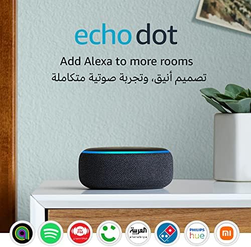 Echo Dot (الجيل الثالث) | سماعة ذكية بالبلوتوث مع أليكسا | استخدم صوتك للتحكم بالأجهزة المنزلية الذكية، وتشغيل تلاوة القرآن أو الموسيقى، وغيرها المزيد (متوفر الآن باللهجة الخليجية) | رمادي غامق
