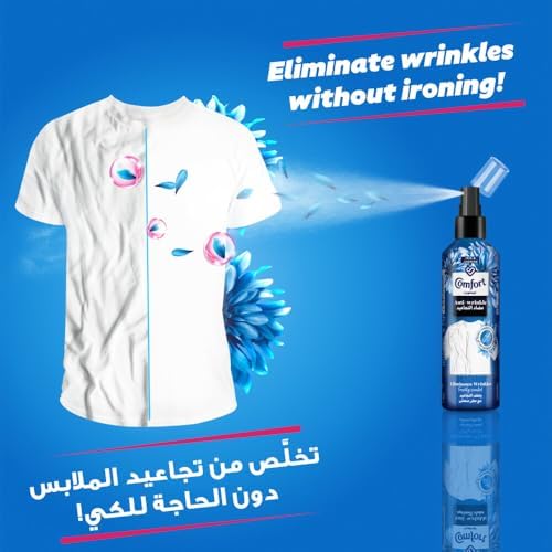 - يزيل التجاعيد بدون استخدام جهاز الكي أو جهاز الكي بالبخار. بخاخ مضاد للتجاعيد برائحة السوسن والياسمين من كومفورت، يزيل التجاعيد ويعمل بفعالية على الأقمشة القطنية أو التي تحتوي على نسبة عالية من القطن