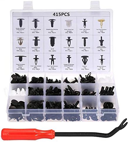 مصنوعة من النايلون المتين للغاية الذي لن ينكسر على الفور. مثالي لمعظم التطبيقات الشائعة مثل: تقليم الباب، والرفرف، وغطاء المحرك والمصد، ونير درع الرادياتير، والتنورة الجانبية، والشبكة، إلخ. أداة إزالة عمود ستيل ومقبض بلاستيك بـ 18 حجمًا مختلفًا للاستبدال الدقيق للمثبتات القديمة أو البالية أو المكسورة. المزايا: مشابك التثبيت للسيارات مصنوعة من مواد بلاستيكية عالية الجودة، مضادة للتلف والتآكل. تستخدم على نطاق واسع لتثبيت كسوة الباب أو الرفرف أو المصدات، أو واق الرادياتير، أو الرفرف الجانبي أو الشبكة وغيرها. قم بإزالة لوح باب السيارة ومشابك التنجيد بسرعة وسهولة دون إتلافها. توفير الوقت والمال. لا حاجة للذهاب إلى متجر قطع غيار السيارات للبحث عن مشابك مختلفة. تحتوي العبوة على 18 مقاسًا مختلفًا، والتي ستلبي احتياجاتك المختلفة، إجمالي 415 قطعة.