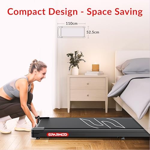 - High-Performance 2.5HP DC Motor: The Sparnod Fitness 2 in 1 walking pad treadmill enables smooth, uninterrupted walking or light jogging due to the powerful 2.5HP continuous-duty DC motor. The motor is designed for efficiency and durability, delivering consistent power while operating at an ultra-quiet volume. Ideal for use in shared spaces like homes, apartments, or offices, this walking pad ensures minimal noise disruption.