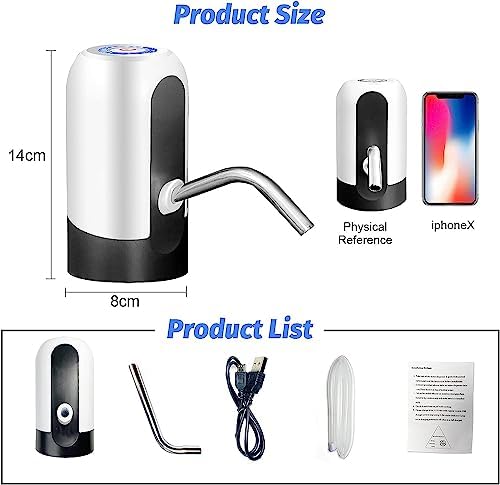 - USB Rechargeable: Built-in rechargeable battery that can be used for 30-40 days or around 4-5 5 gallon water bottles once fully charged. It can work anywhere you want. This long lasting battery will make your life so much easier