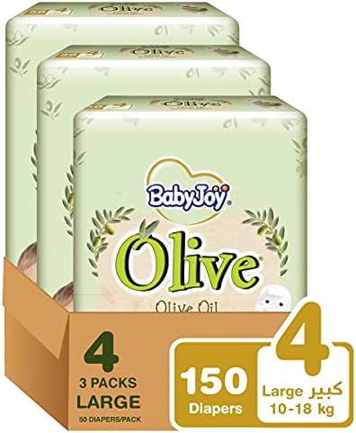 BabyJoy Olive Tape Diaper, Size 4, Large, 10-18 Kg, Mega Box, 150 Diapers Package design may vary