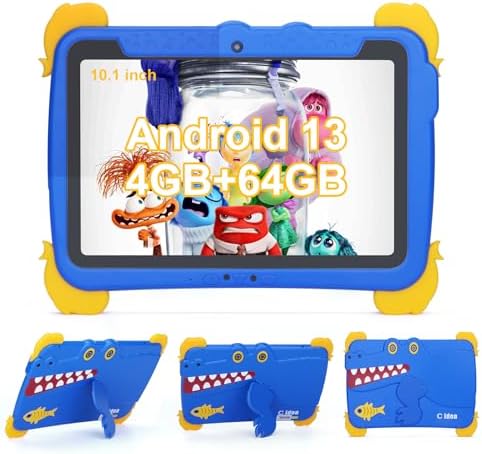 C idea 10.1 inch Kids Tablets,Android 12 Tablet for Kids Age 3+, 4GB RAM+64GB ROM(1TB TF),1280×800 FHD Large Screen Tablet,6000mAh Children Tablet with Pen,Support 5G/2.4G WiFi(Blue)