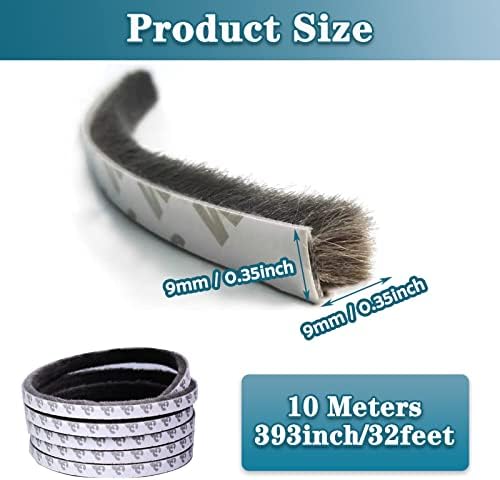 WEATHER STRIPPING DOOR SEAL Weather Stripping have the function of dustproof, windproof, rainproof, crashproof, soundproof and energy-saving. They are good sealing performance, which can block cold air or hot air from entering your house and reduce the waste of air conditioning cooling and heating. Door weather stripping and window seal strip save energy, improves the quality of your life, and brings you a healthy and comfortable living environment. HIGH QUALITY Brush door seal strips are made of gray fleece weatherstrip material woven, fine brush thick and soft, low friction, no noise, high elasticity, warpable without deformation, strong resistance, waterproof and durable, withstand wear and tear, long use time. STRONG ADHESION The self-adhesive weather stripping door seal have high quality adhesive with strong adhesion, which can work for a long time and are not easy to be unglued. Combined with soft brushes and thick material, they can be used in extreme weather without being damaged or affecting the viscosity due to sun and rain. WIDE USE Felt weather stripping are suitable for various gaps, such as sliding doors, glass doors, door frame weather stripping, garage door sealing, window gaps, closets, cabinets and other gaps. Our weather stripping are 0.35" (9mm) thick, 0.35" (9mm) width backing and a total length of 32.8 feet (10m). Enough quantity to meet your different daily needs. EASY TO INSTALL Weather sealing strips are easily customized by measuring the gap size and length of the window or door and choosing the right size weatherseal. It can be cut with scissors and easily bent into any shape you need. Simply peel off the backing film and apply the brush strip to the surface to be adhered. Note: Make sure the surface to be adhered is clean and dust-free before applying the weatherstripping.